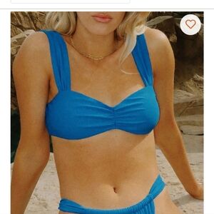 Eternal bikini top and Nocturnal bottom in size small. Stylish blue bikini set with a ruched top and high-cut bottoms. Perfect for the beach or pool.