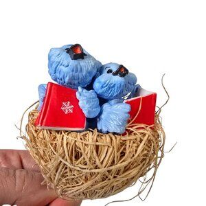 Blue Bird Christmas Ornament Clip On Nest Holiday Blue Jay Singing Trio Hallmark 80s