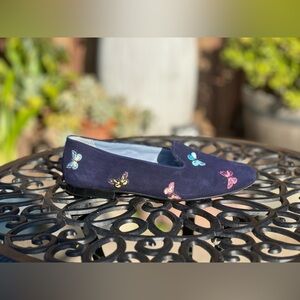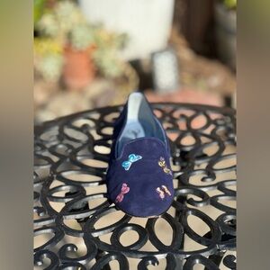 Blue Bird — Embroidered Butterfly Suede Flats