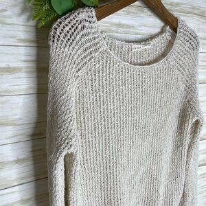 Blue Bird Oatmeal Beige Open Knit Beachy Sweater