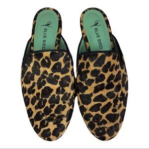 Blue Bird Pony Hair Leopard Print Mules Size 6