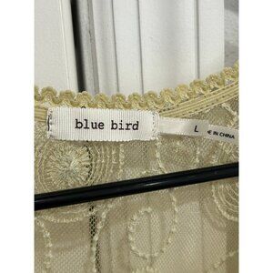 Blue Bird Sheer Beige Embroidered Lace Tunic Top V Neck Short Sleeves Size L
