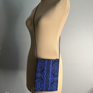 Blue Black Cottagecore Boho Fabric Crossbody Pouch Zipper