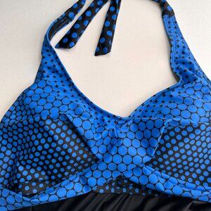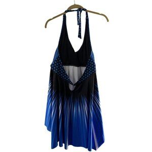 Blue & Black Halter Neck Polka Dot Swim Dress Cover-Up 2XL Beachwear Slimming