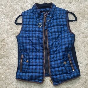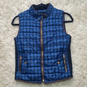 🔥 Blue & Black Plaid Quilted Puffer Vest – Lightweight Layering essential SZ Sm