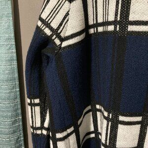 This is a nice heavy sweater. It's dark blue, black and white in size XXL