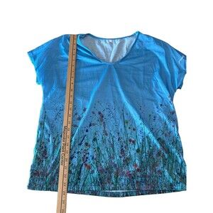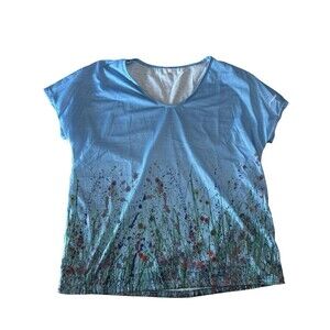 Blue Blouse Too Short Sleeve XL Summer Floral Paint Boho