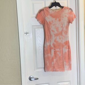 Blue Blush Crew Neck Short Sleeve Ribbed Tye-Dye Mini Dress Size Small