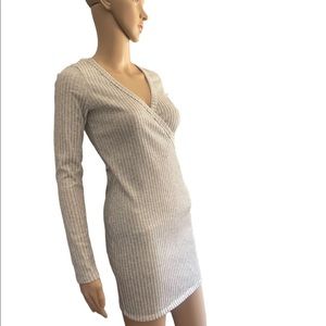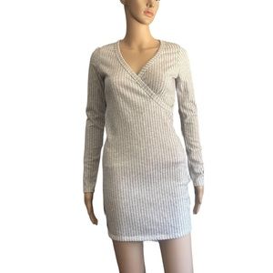 Blue Blush Gray Ribbed long sleeve mini body on dress size small