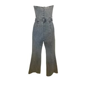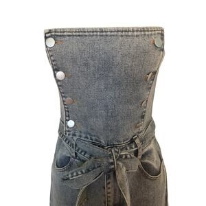 Blue Blush Jean Jumpsuit Strapless w/8 button Bodice Wide Leg S
