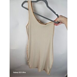 Blue Blush Los Angeles, szM, yellow, 1 shoulder, ribbed, slip dress, made in USA