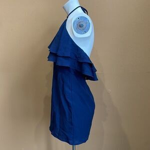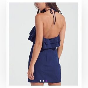 Blue Blush | Navy Ruffle Popover Halter Dress - Women