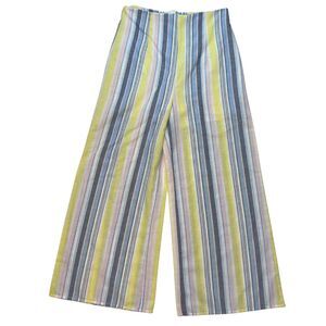Blue Blush Pants Women Medium Boho Cotton Cottagecore Wide Leg High Rise Trouser