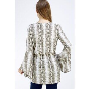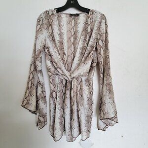 Blue Blush Snake Animal Print Knotted Front Long Bell Sleeve Mini Dress Sz Small