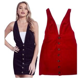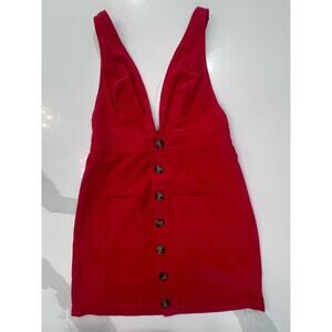Blue Blush Treasure Corduroy ButtonDown Crossback Jumper Dress Red SZ Med
