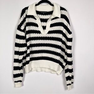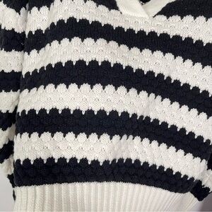 Blue Blush White Black Sweater Open Collar V Neck women’s sz Medium