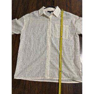 Blue Blush White Sequin Button-Up Collared Shirt Small