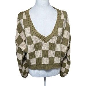 Blue Blush Women's Size Large Checkered Sweater Cropped Oversized
