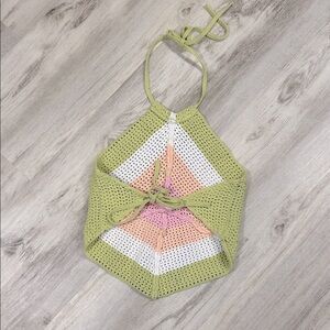 Blue Blush Y2K Fairycore Crochet Halter Tie Top – Green Pink Peach White / Sz S