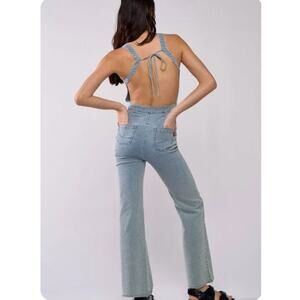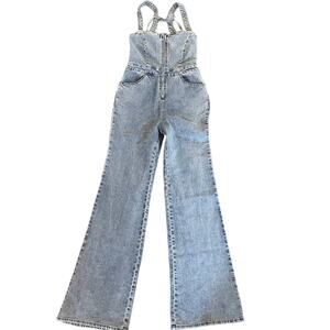 Blue Blush light Denim Jumpsuit backless Womens Small Revolve Flare pants NWOT