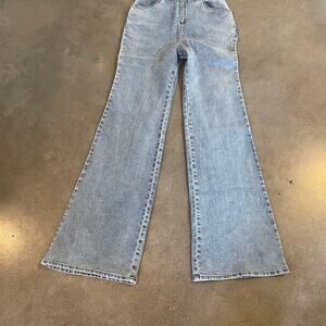 Blue Blush light Denim Jumpsuit backless Womens Small Revolve Flare pants NWOT, zip up front, tie open back front pockets. SOLD OUT ONLINE size small. bachelorette denim, western country, casual, everyday denim