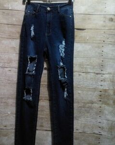 Bob jeans with blue distressed front Size: 9/10 80% cotton 15% polyester 5% Elastane Pre-owned