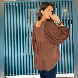 Blast back to the past in this bell sleeve tunic 😍 This lightweight long sleeve tunic top is a rich chocolate color. OSFM, xtra small-xtra large.