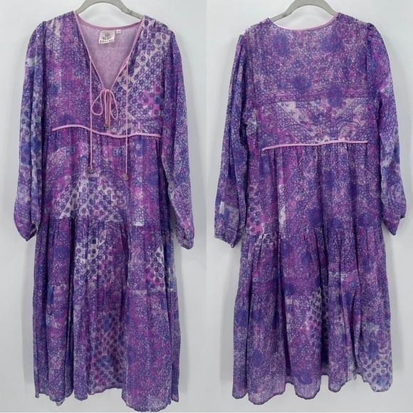 Blue Boheme Purple Boho Kayla Cotton Midi Dress Size M/L Medium Large
