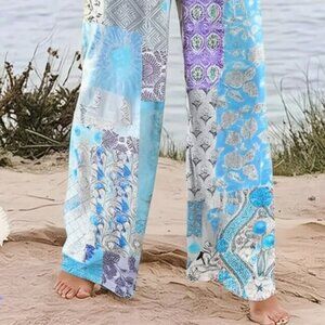 Blue Bohemian Women's Floral Print Ditsy Patchwork High Waist Loose Pants