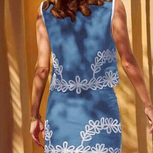 Blue Bohemian Women's Sleeveless Embroidered Vest & Skirt Set
