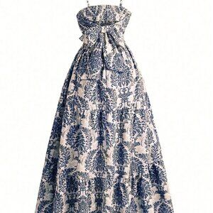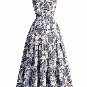 Blue Boho Women's Vacation Casual All Over Print Ruched Waist Camisole Dress