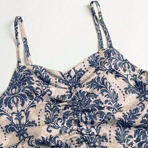 Blue Boho Women's Vacation Casual All Over Print Ruched Waist Camisole Dress