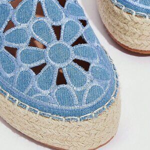 Blue Boho Women's Woman Floral Embroidered Flat Vacation Summer