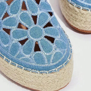 Blue Boho Women's Woman Floral Embroidered Flat Vacation Summer