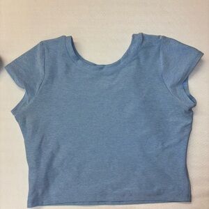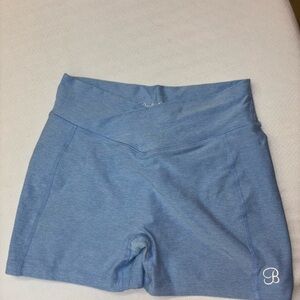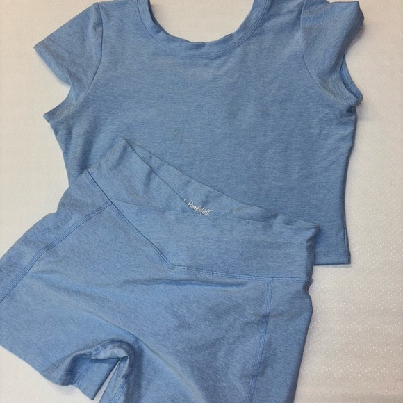 Comfortable blue workout set with a short-sleeve top and matching shorts.