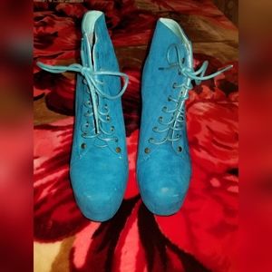 Light Blue High Heel Booties with laces