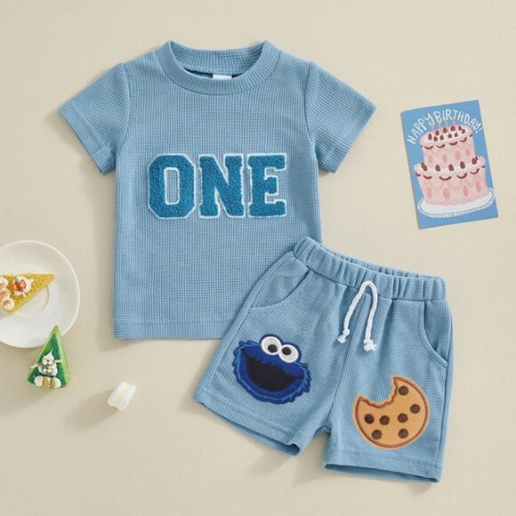 Blue Boy First Birthday Outfit Clothes Shirt Cookie Monster Shorts Sesame Street