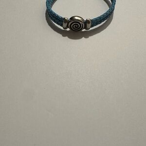 Elegant blue braided bracelet featuring a striking silver spiral charm. Perfect for adding a touch of sophistication to any outfit.