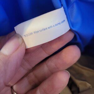 Minor scuffs on faux leather trim and faint marks on the canvas exterior.