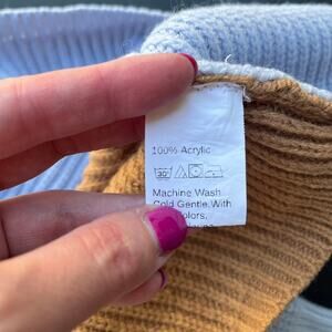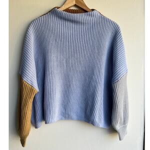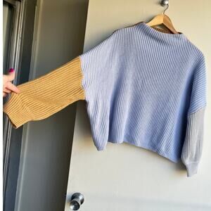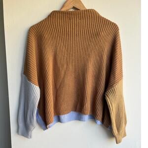 Blue Brown Colorblock Boat Neck Oversized Knit Sweater Size Medium