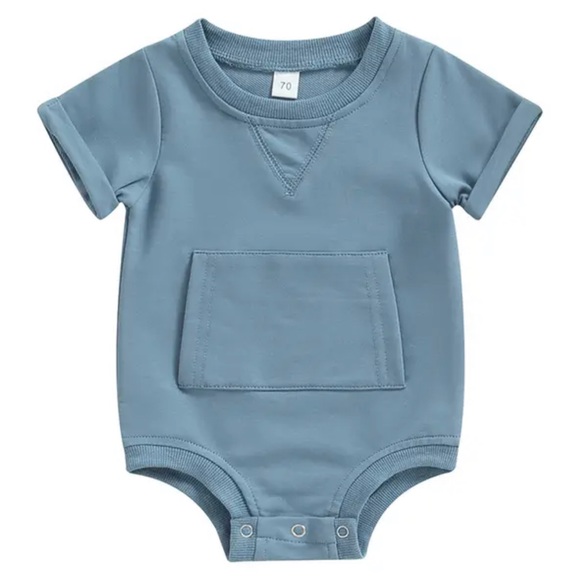 The sleeve rolls are too cute! This blue bubble romp will be perfect for summer!