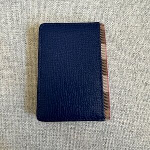 Blue Burberry Folding Card Case Wallet with nova check detail on the side