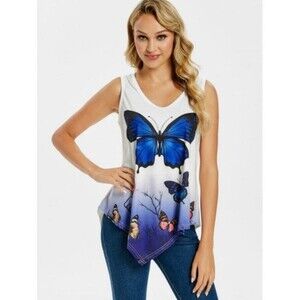 Brand new beautiful sleeveless butterfly blouses for the summer time,very pretty,free flowing tops,cut at a shark bite angle at the bottom, and accented with lace on the back Good for baby showers.
