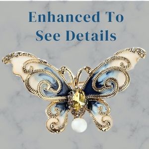 Blue Butterfly Brooch With Enamel, Crystals, Rhinestones, Faux Pearl - NWT