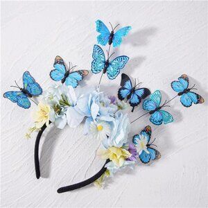 #ButterflyHeadband #FloralCrown #CosplayHeadpiece #HalloweenCostume #TeaPartyAccessories #MonarchFascinator #BlueHeadband #DressUpAccessories