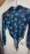 Sheer bodysuit with vibrant blue butterfly print. Long sleeves and turtle neck design.