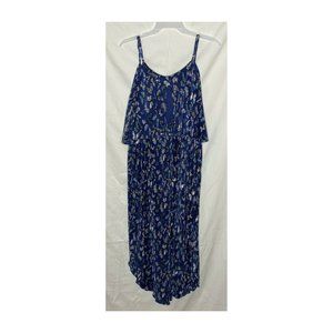 No Comment Plus (2X) Blue Butterfly Spaghetti Strap Lined Maxi Dress
