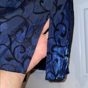 This stylish blue button-down shirt features a notched collar and cuffed sleeves, offering a relaxed and comfortable fit. The fabric's subtle sheen and vertical pattern add a touch of sophistication, making it ideal for both casual and evening occasions. Its versatile design ensures it remains a staple in any wardrobe.