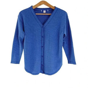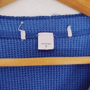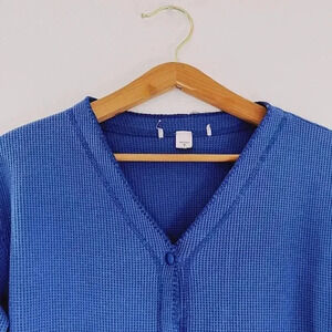 Blue Button Down Waffle Long Sleeve Shirt Women's Size S