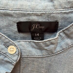 Stylish blue button-up blouse with a classic design. Perfect for casual or formal wear. Jcrew Size 14. EUC.